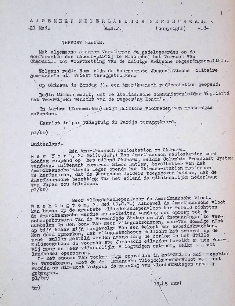 De Nieuwe Dag, dinsdag 11 mei 1945