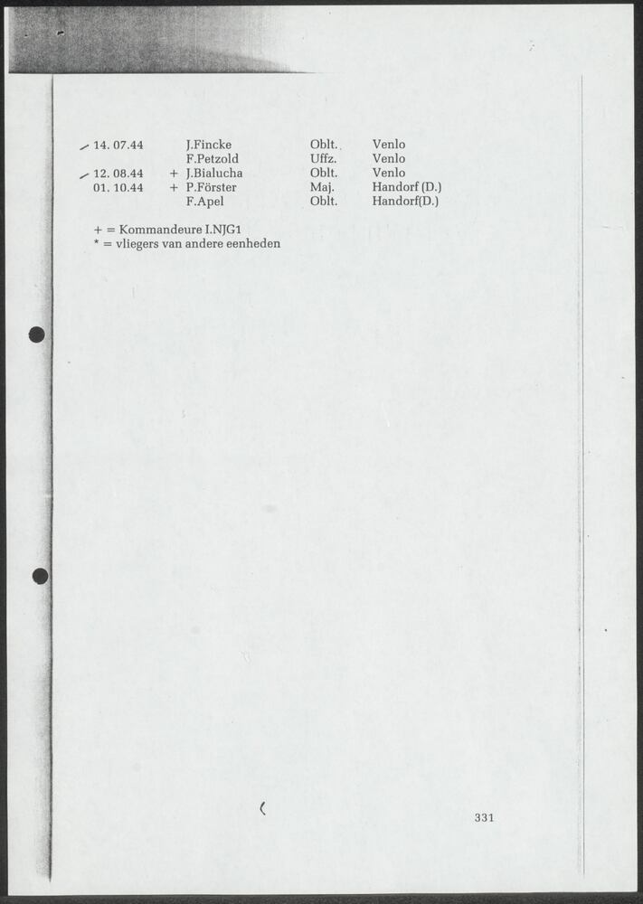 Overzicht van de verliezen van I. NJG 1