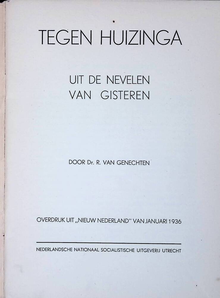 Brochure: R. van Genechten, Tegen Huizinga. Uit de n...
