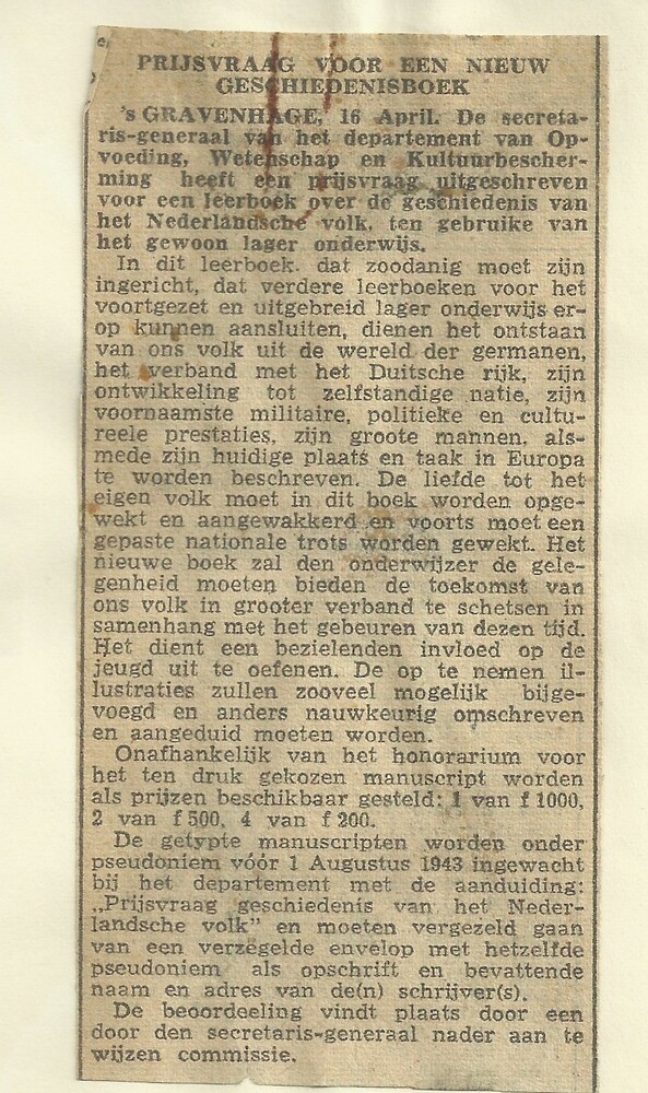 Prijsvraag voor een nieuw geschiedenisboek
