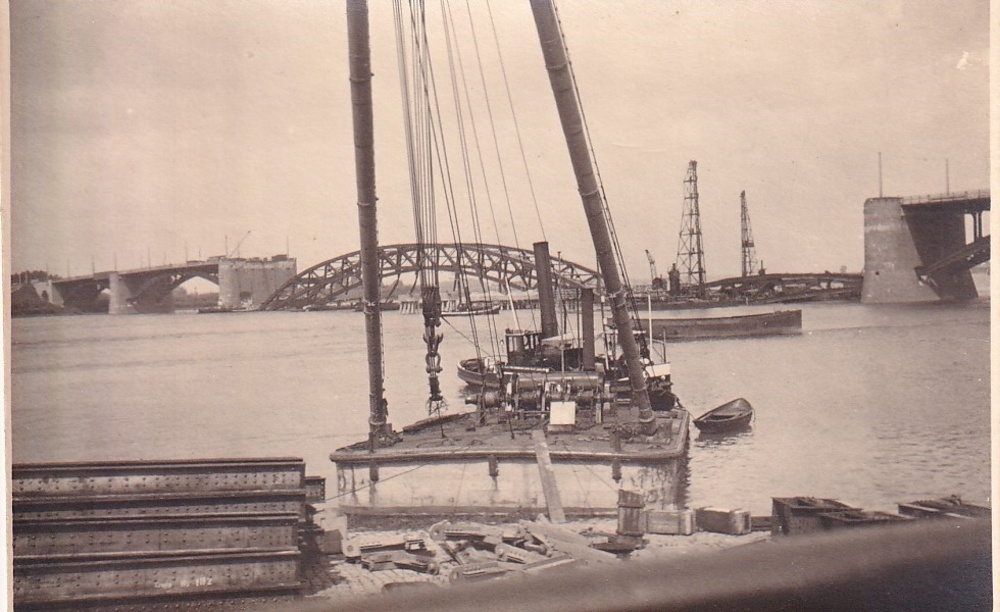 Foto's verwoeste en herstel van de Waalbrug bij Nijm...
