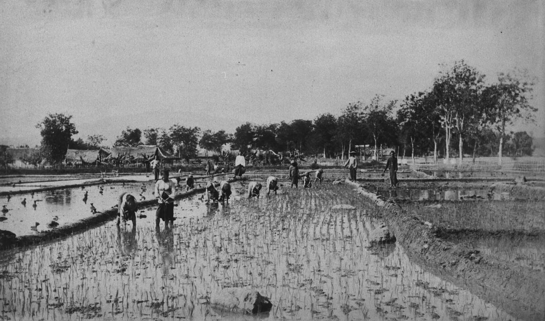 Planting bibit in a rice field