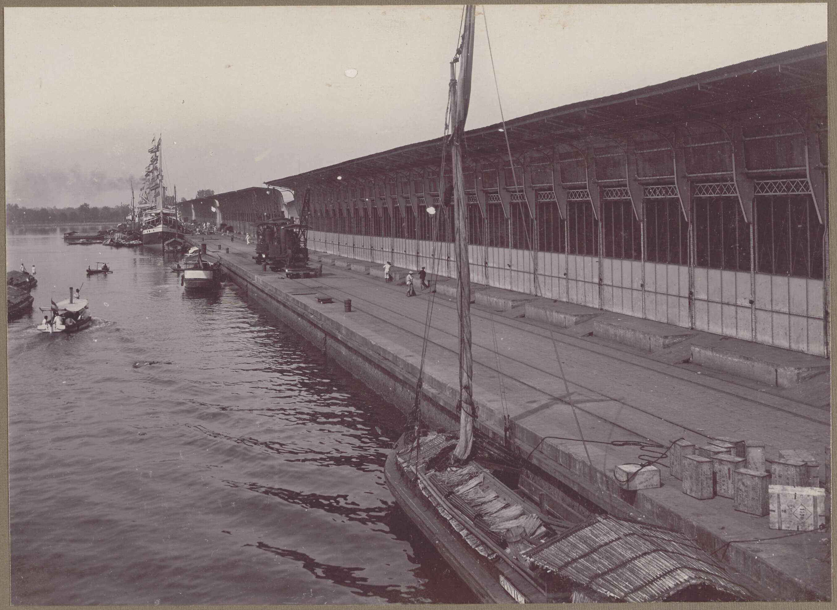Bedrijvigheid op en langs de kade in de haven van Ta...