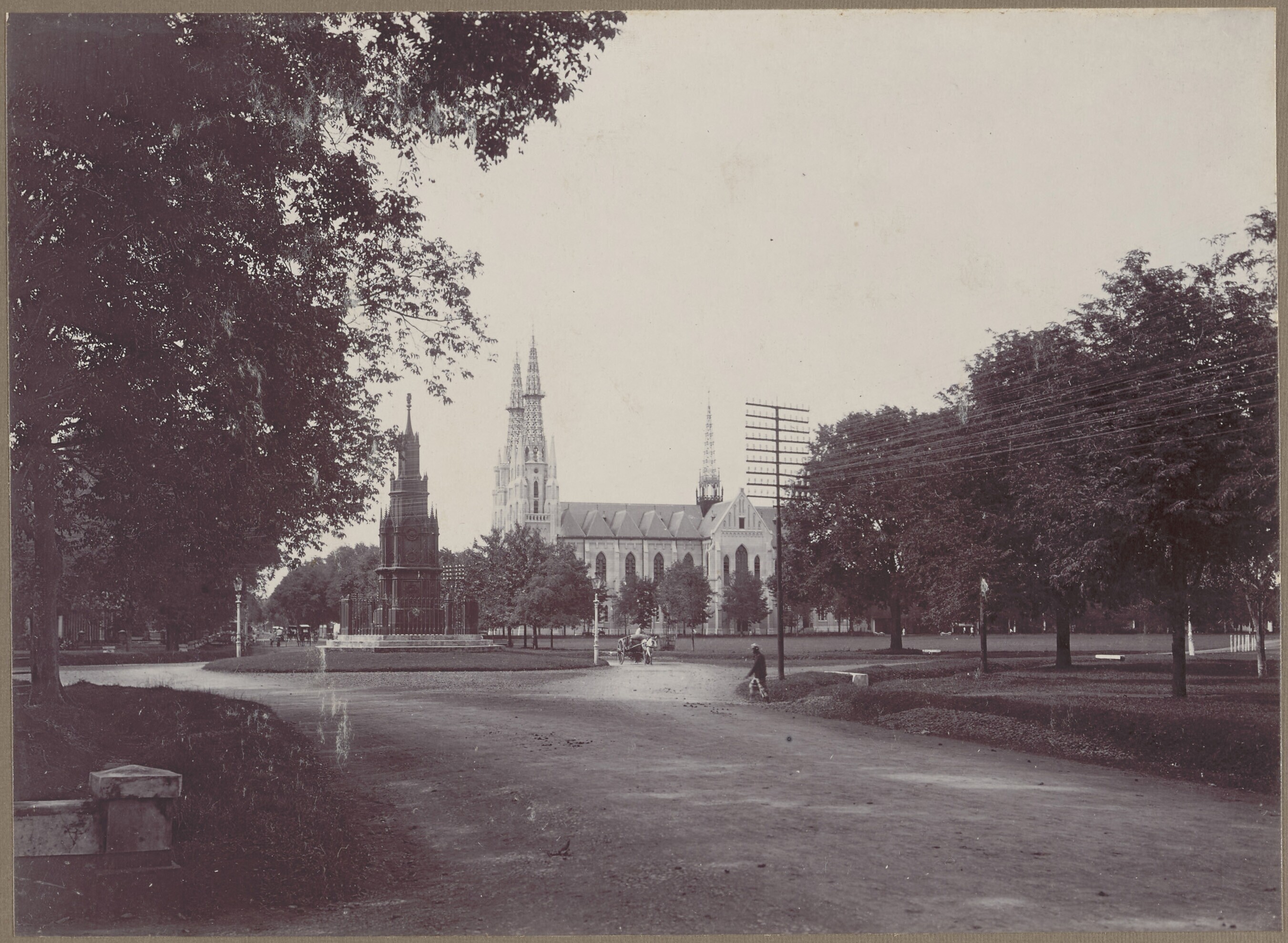 Het Waterlooplein te Batavia met het Michielsmonumen...
