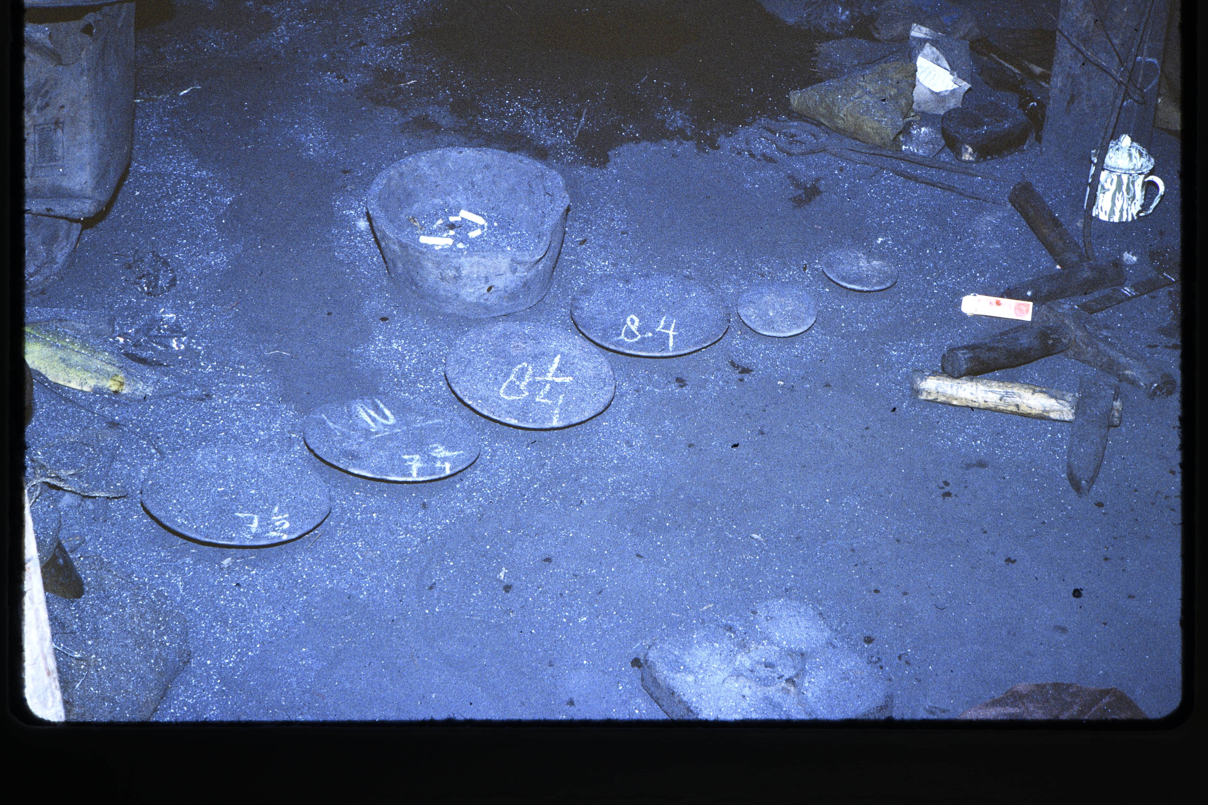 Zak met links twee sagokloppers op de grond liggend.