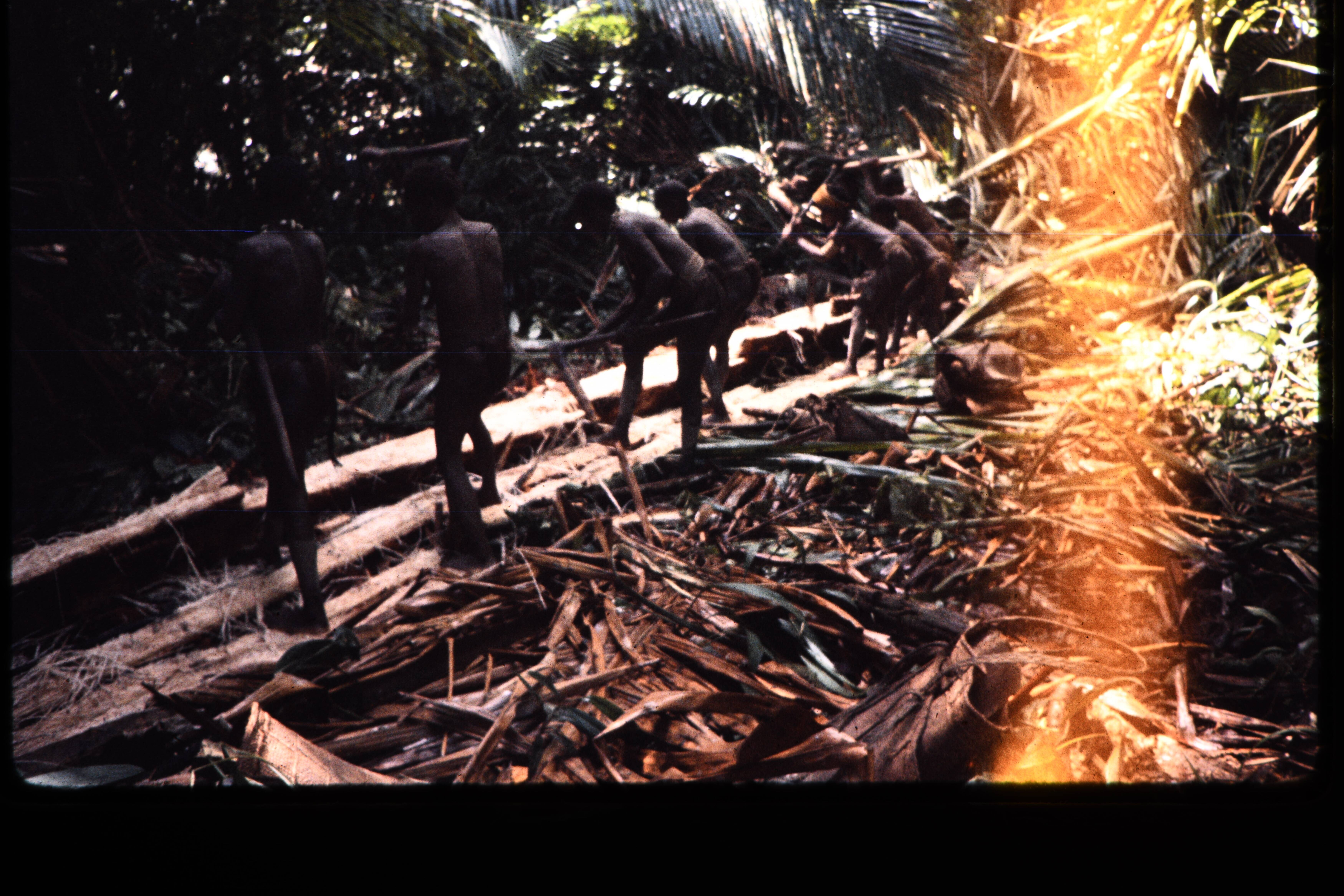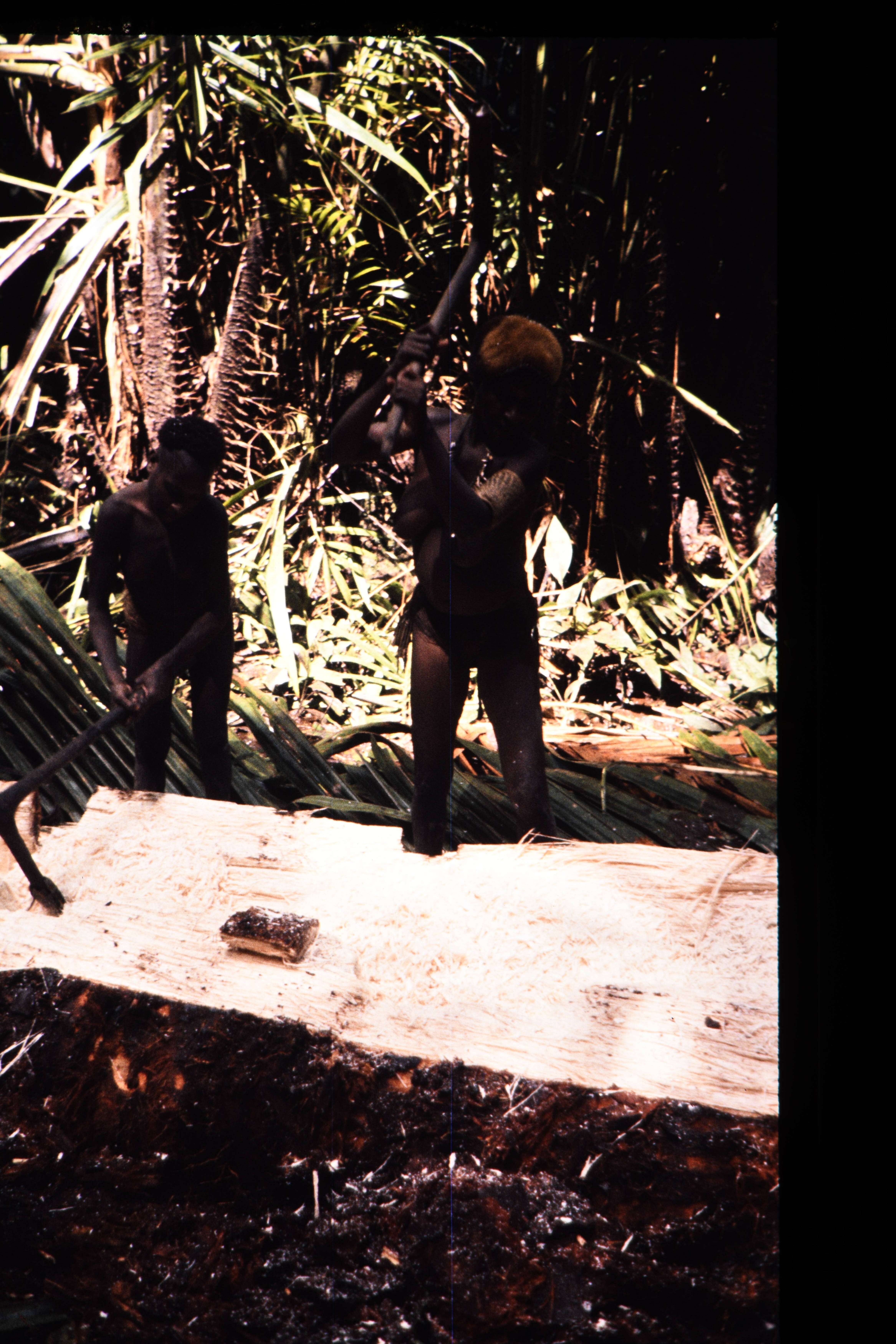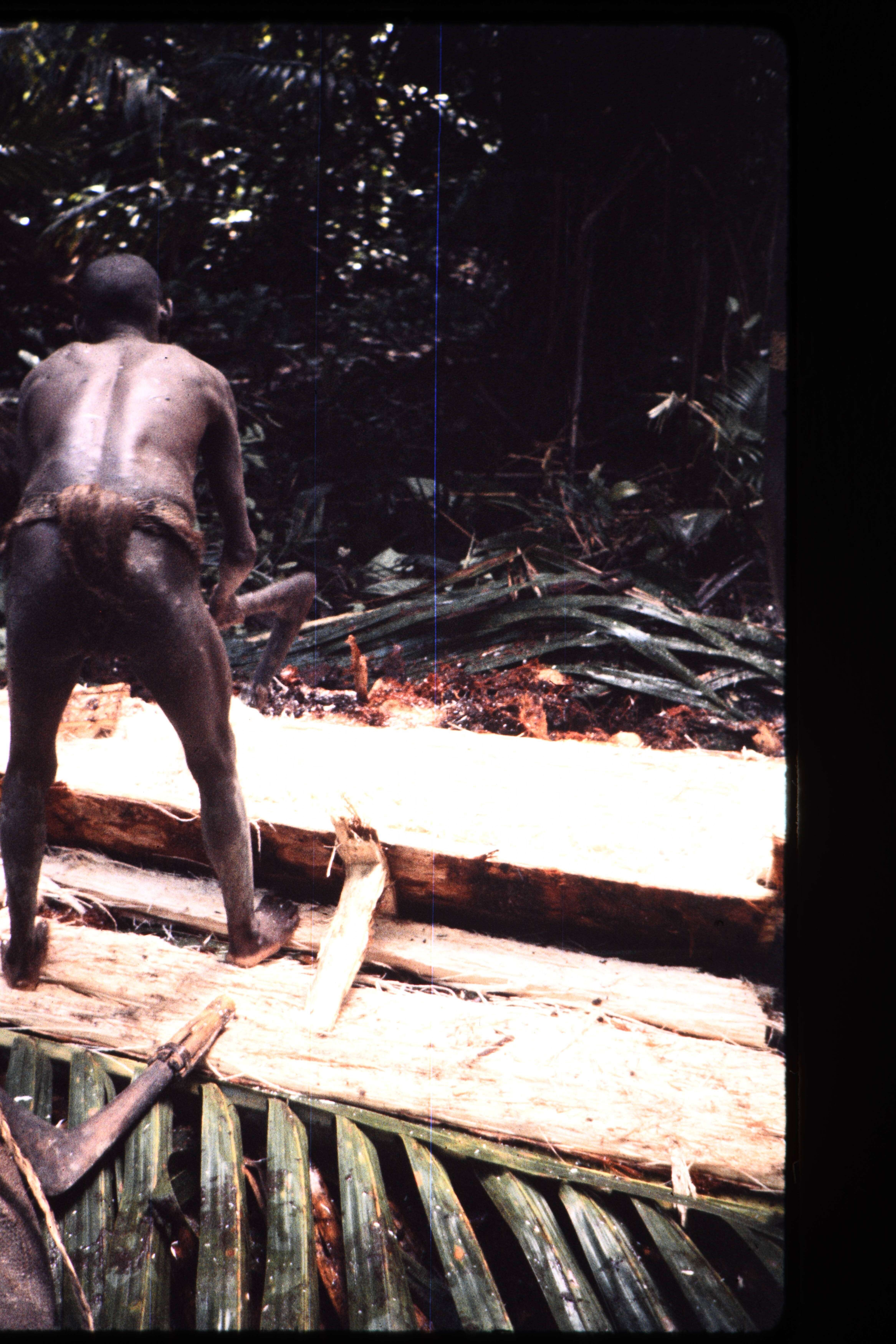 Kawirinor toekijkend bij zijn kloppende vrouw.