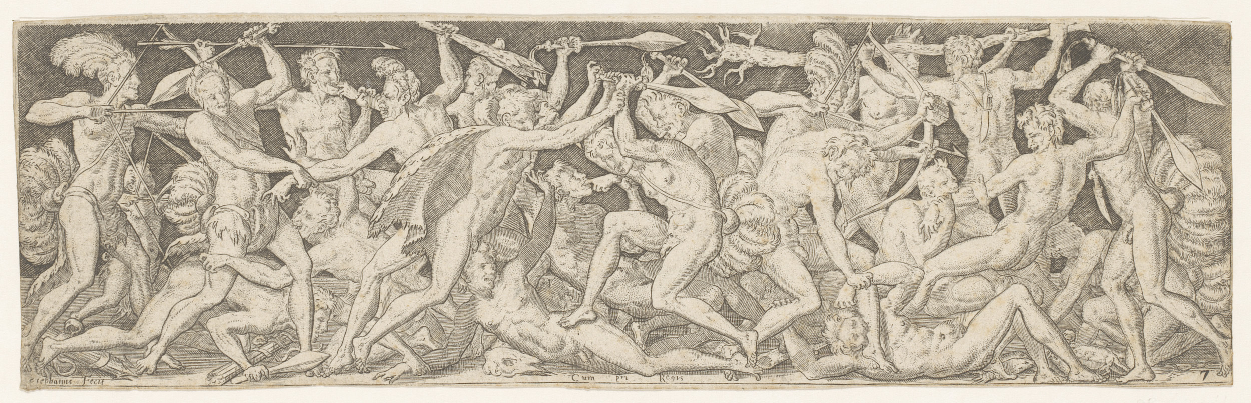 Gevecht tussen naakte mannen, waarvan sommigen versi...