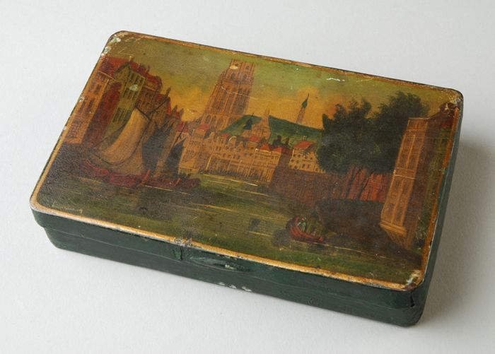 IJzeren tabaksdoos, beschilderd met de Kolk te Rotte...
