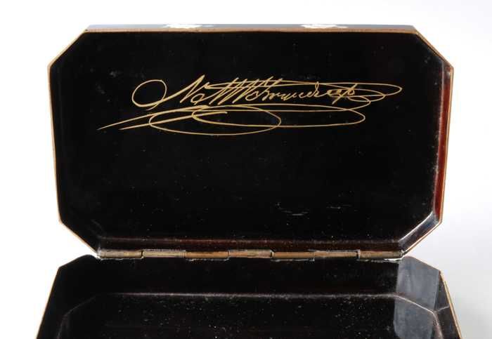 Tabaksdoos met zilver en parelmoer inlegwerk met wer...