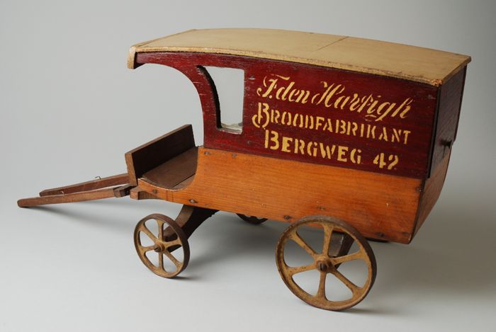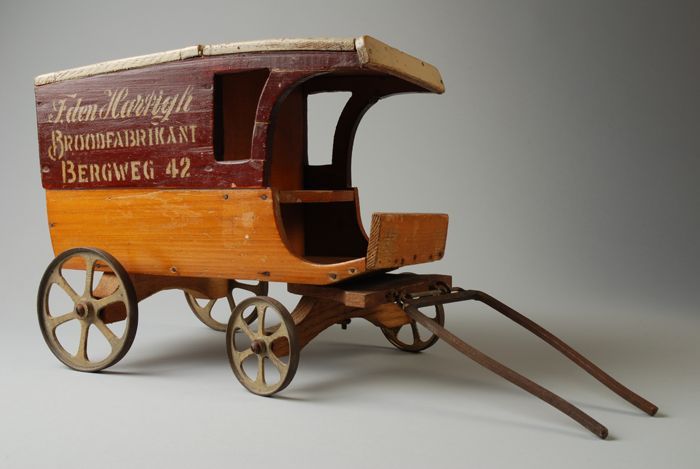 Houten bakkerswagen van "T. Den Hartigh", speelgoed