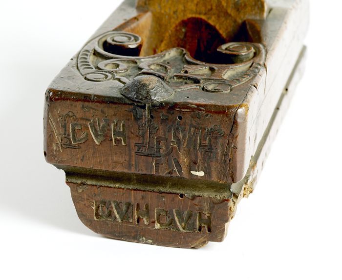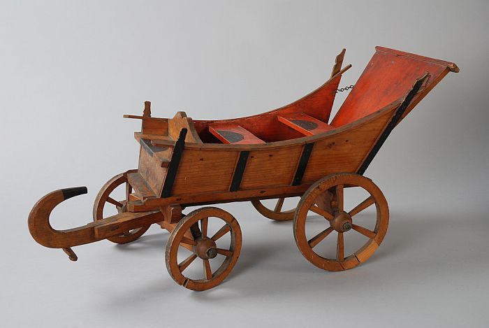 Model van houten boerenwagen, omhoog gekrulde dissel...