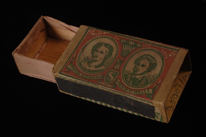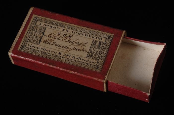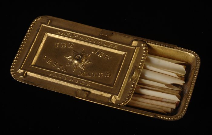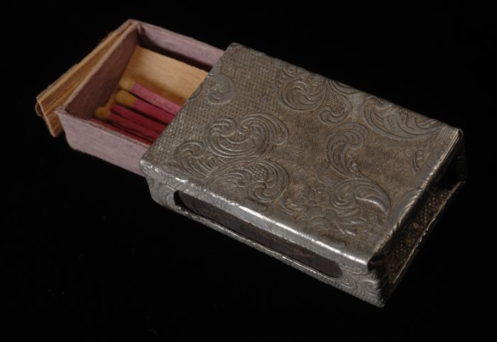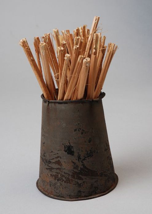 Conisch blik met spanen, zwavelstokken