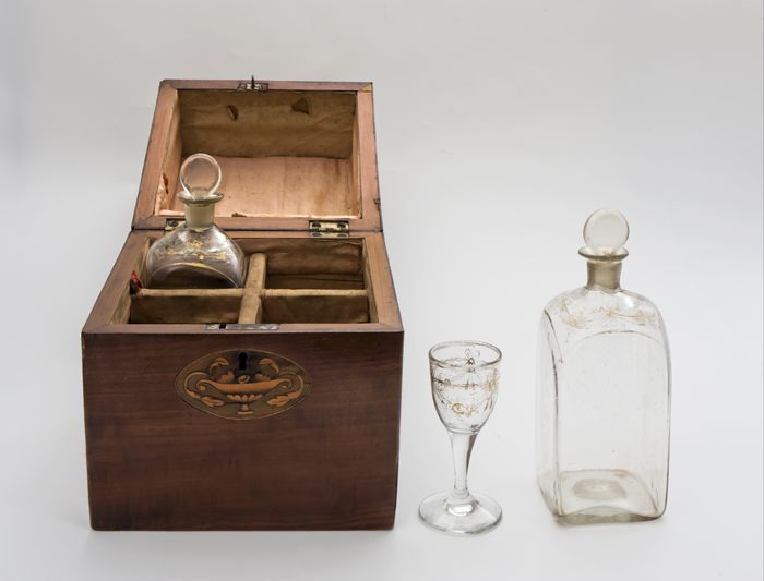 Likeurkeldertje, houten foedraal, marquetterie-ornam...
