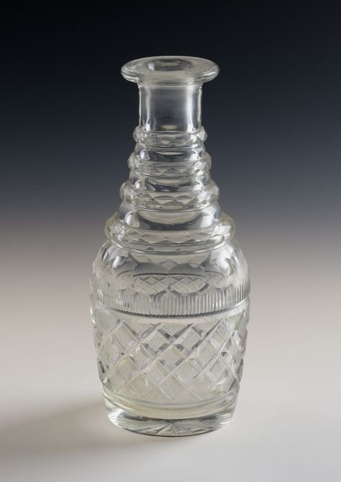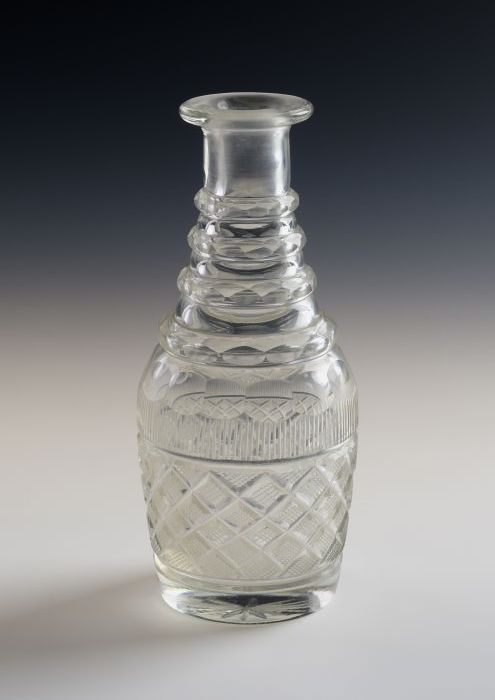 Kristallen karafje, ruitpatroon om de buik, vier rin...
