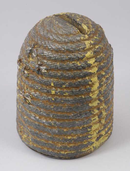 Metalen spaarpot in de vorm van een bijenkorf
