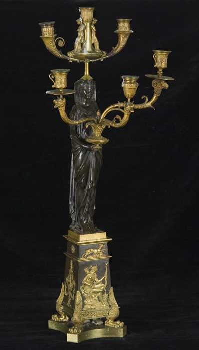 Bronzen kandelaber in empire stijl met Egyptisch figuur