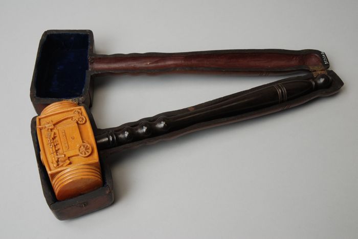 IJzeren tabaksdoos, beschilderd met gammele koets en...