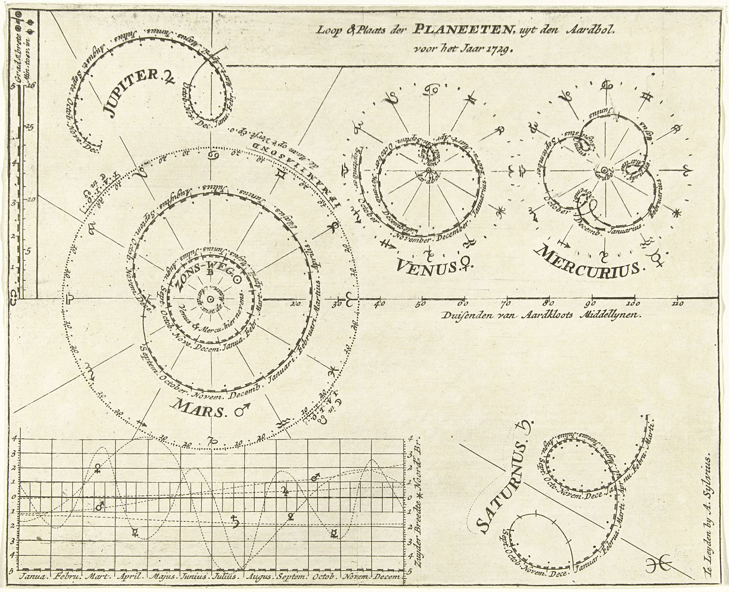 Loop van de planeten in het jaar 1729
