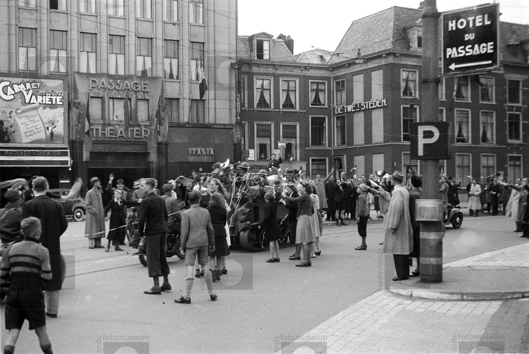 Geallieerde troepen worden bij hun intocht in het ce...