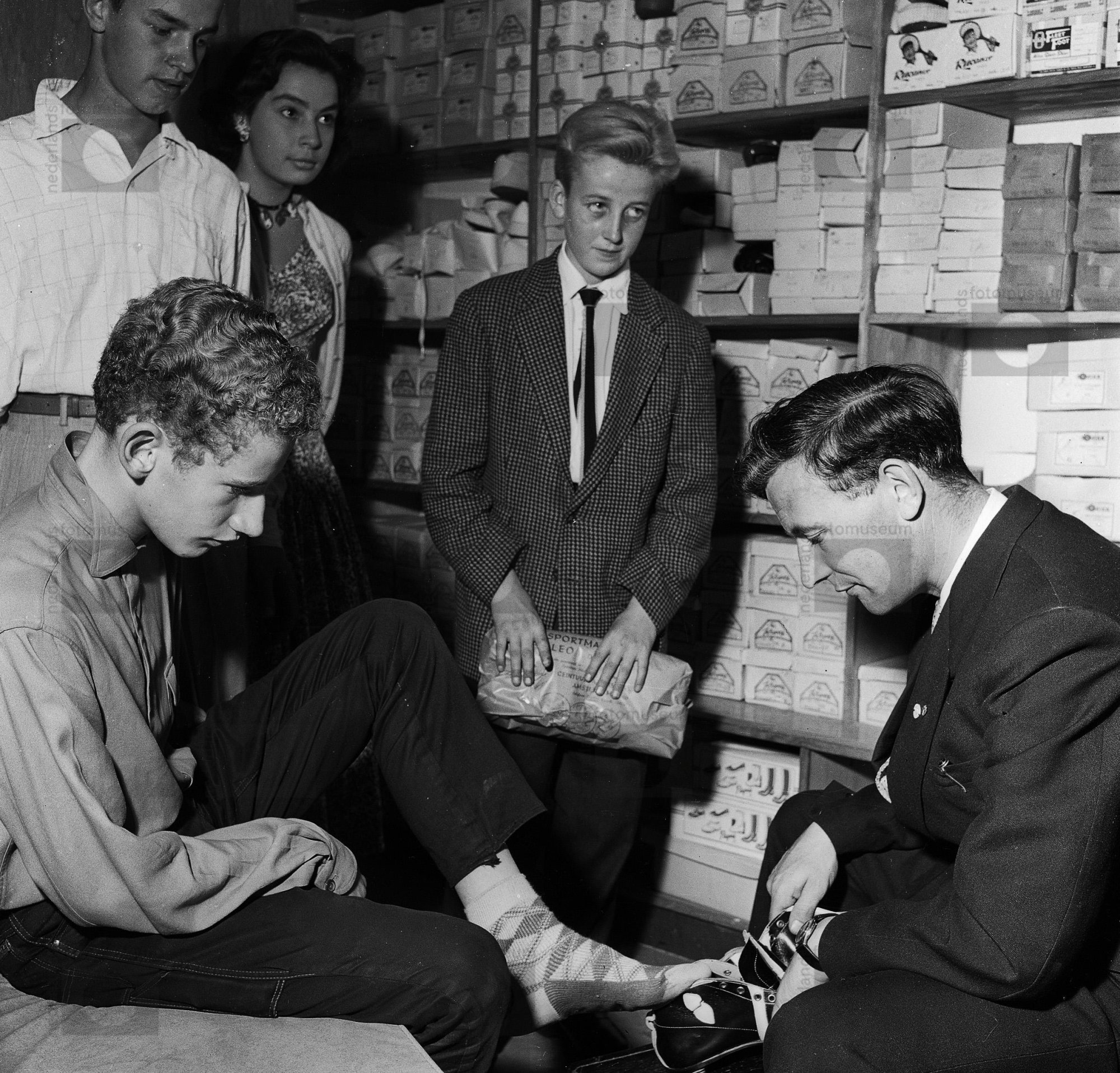 Abe Lenstra met jonge fans in een sportwinkel, Rotte...