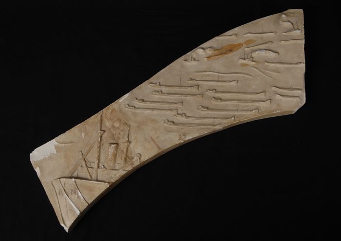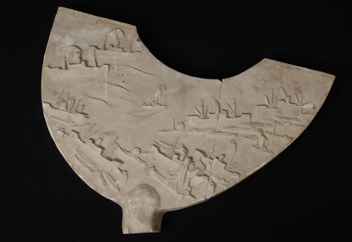 Gipsmodel van water met schepen, fragment Gerrit Jan...