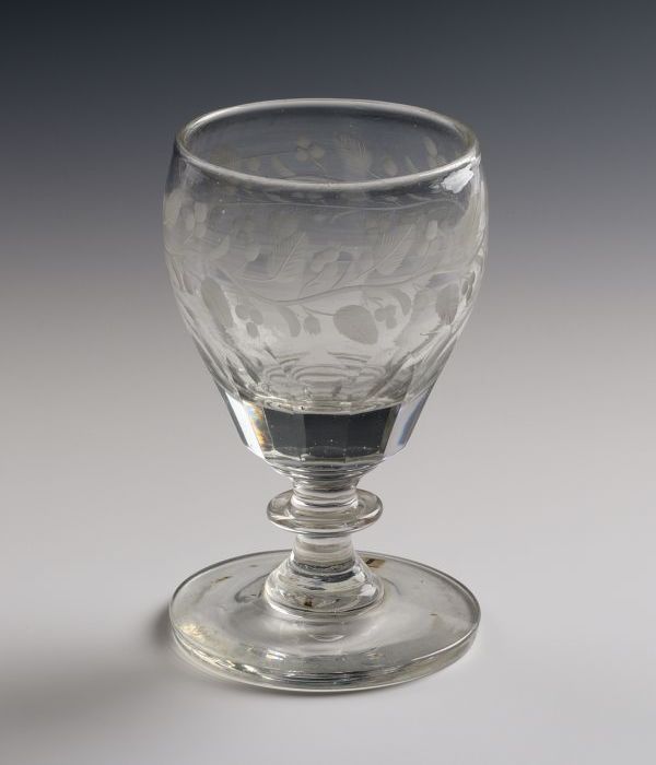 Klein kelkglas met ranken met bladeren en vruchten