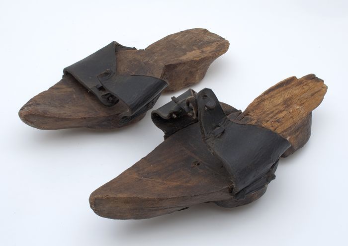 Leren muil, schoeisel met leren neusstuk en houten zool