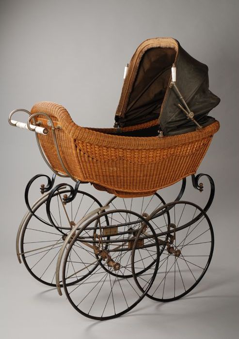 Wandelwagen op grote ijzeren spaakwielen, gevlochten...