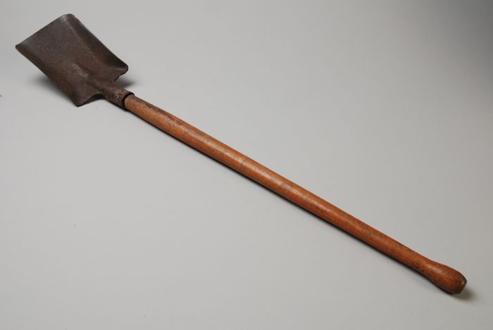 IJzeren speelgoedschep met houten steel