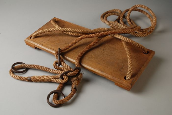 Schommel, houten zitting, touw en ringen