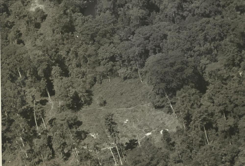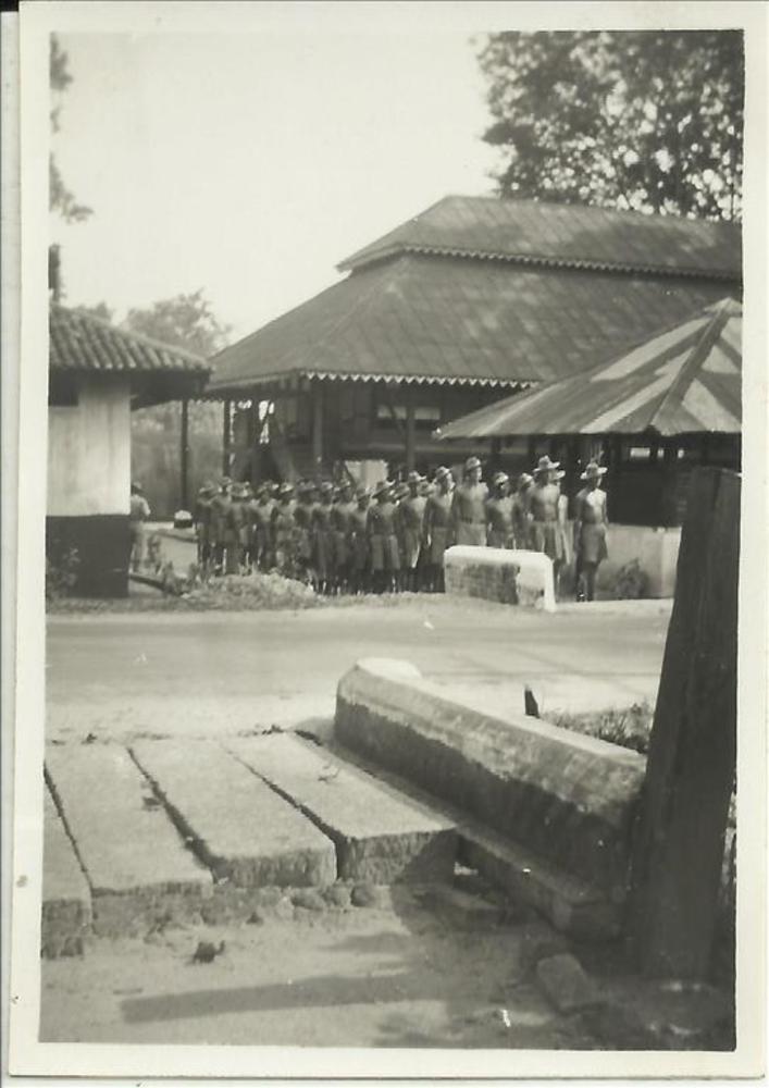 Nieuw-Guinea; KM-militair gehurkt op rijplaten weg