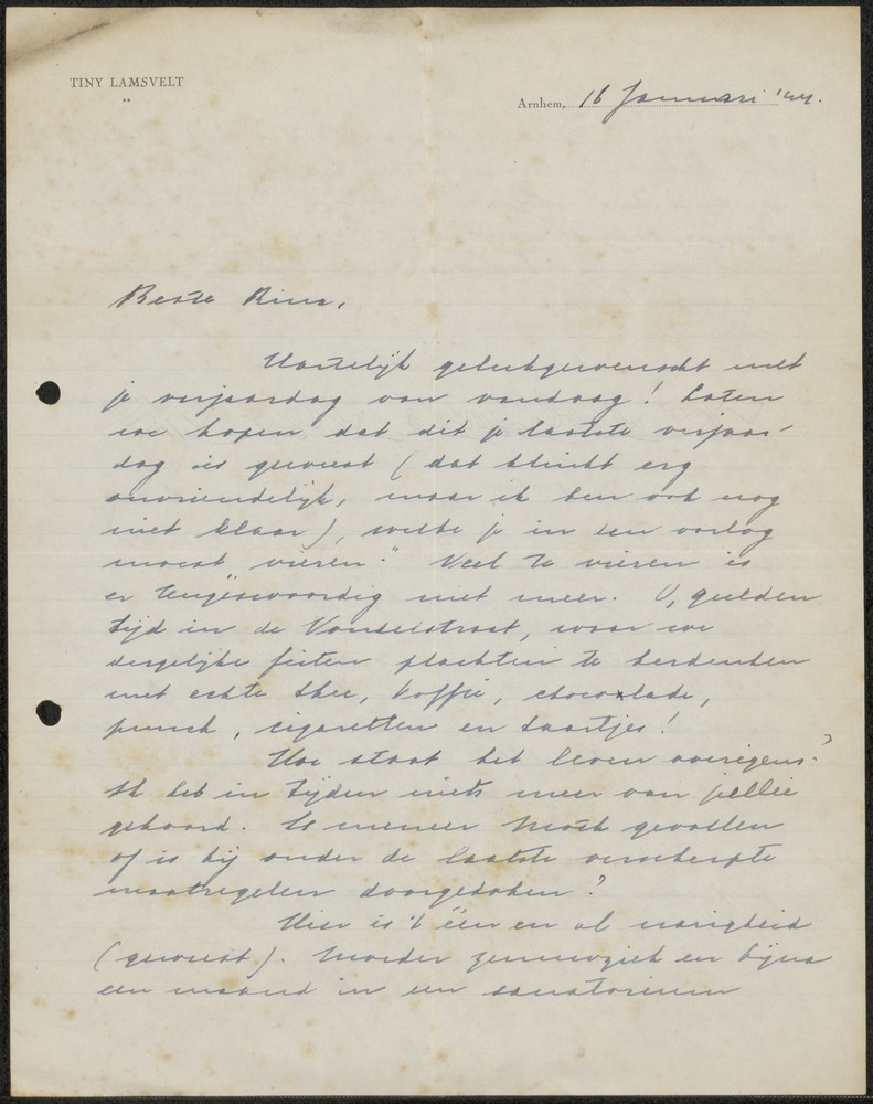 een handgeschreven brief 16 januari 1944