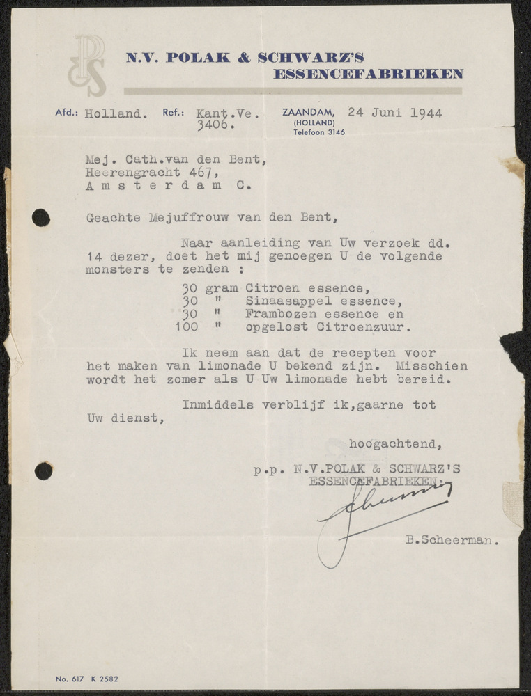 Aan dhr Avis te Amsterdam