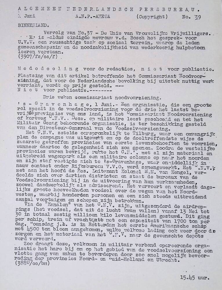 Algemeen Nederlandsch Persbureau, mededelingen, 1 ju...