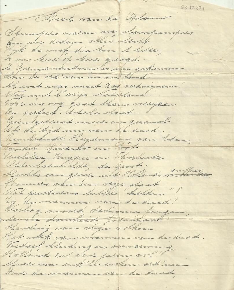 "Lied van de Opbouw" (gedicht, handgeschreven)