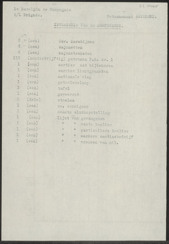 Ie Bataljon 4e Compagnie Detachement ANTOSARI Invent...
