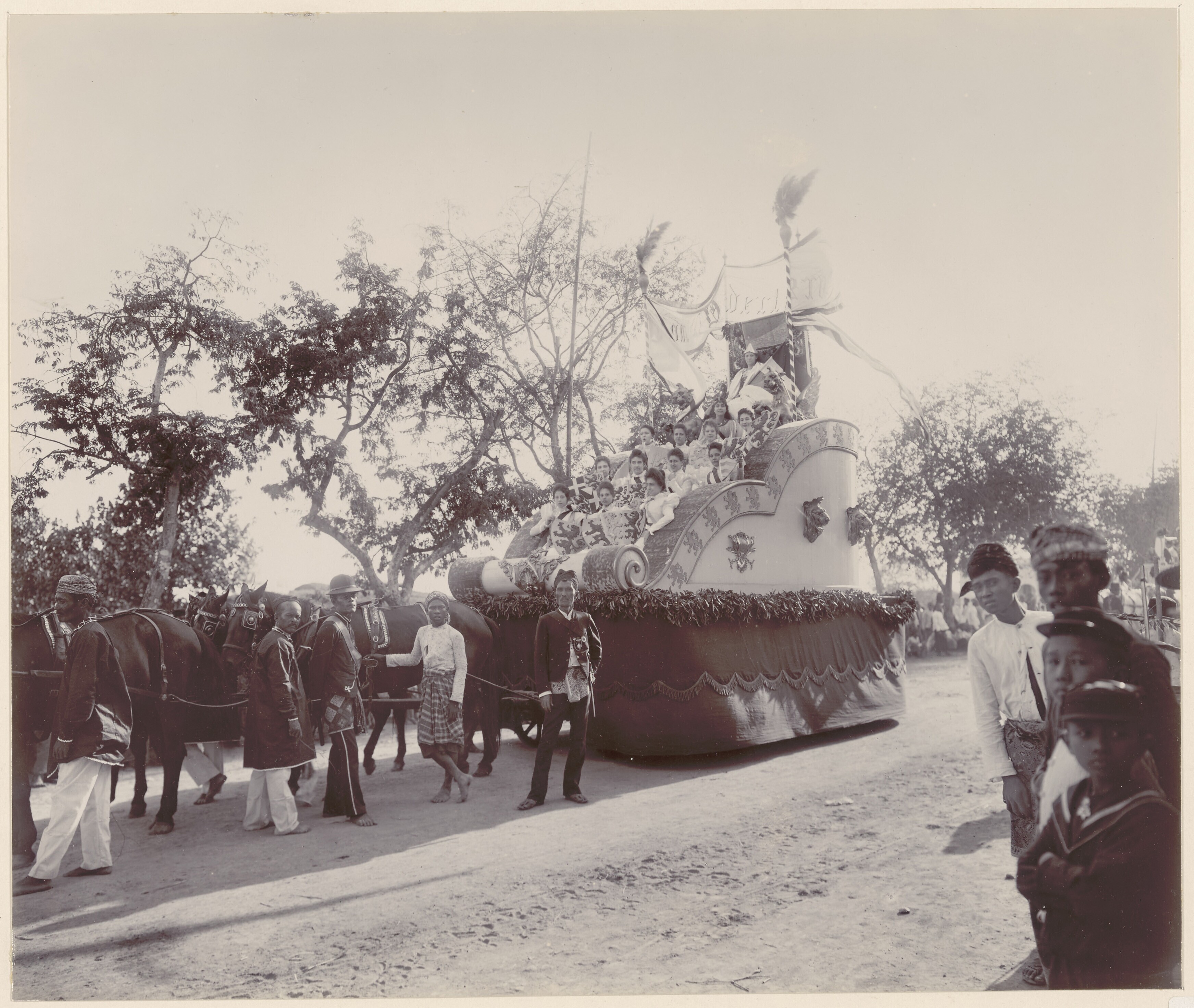 Bloemencorso tijdens de kroningsfeesten in Soerabaja...