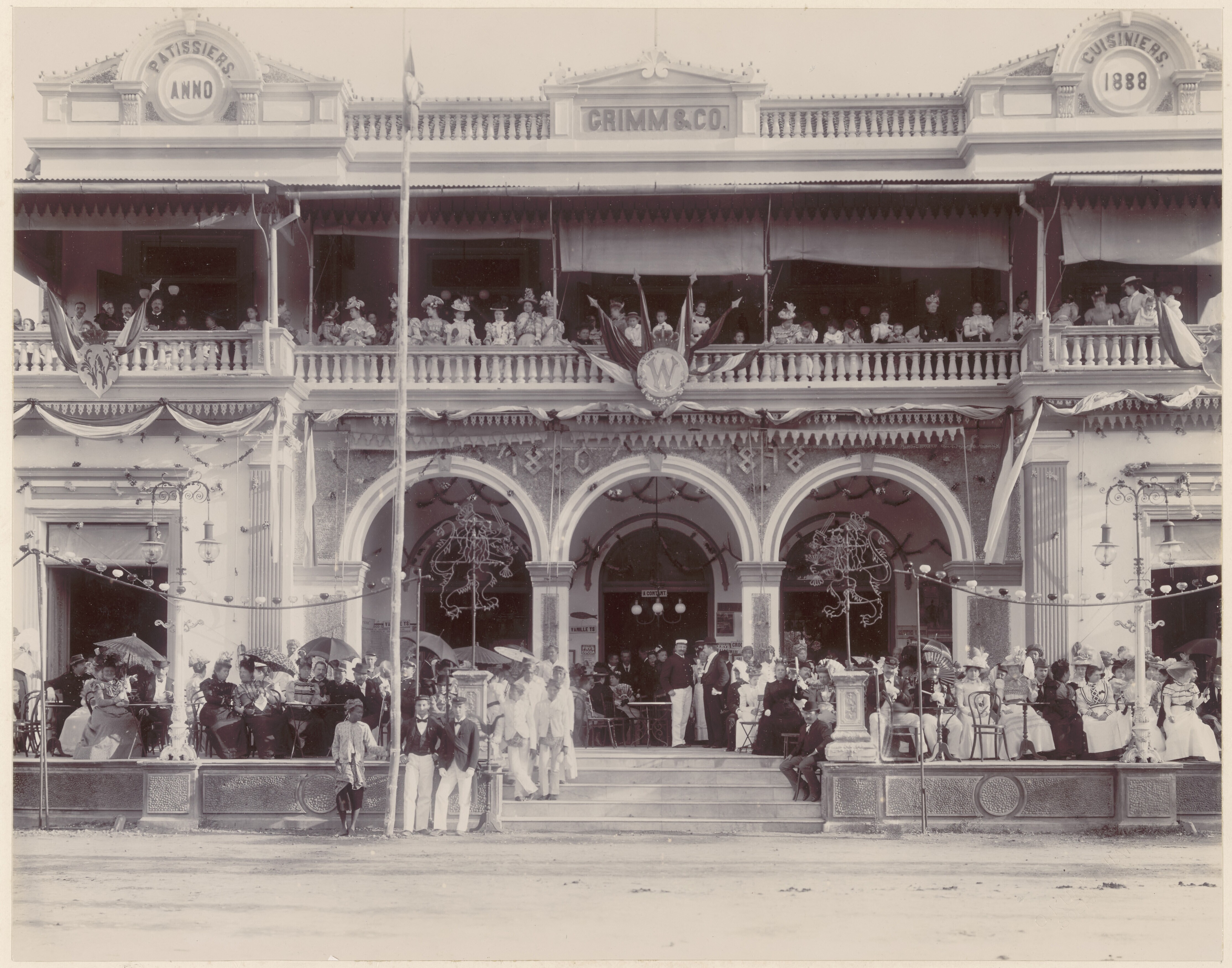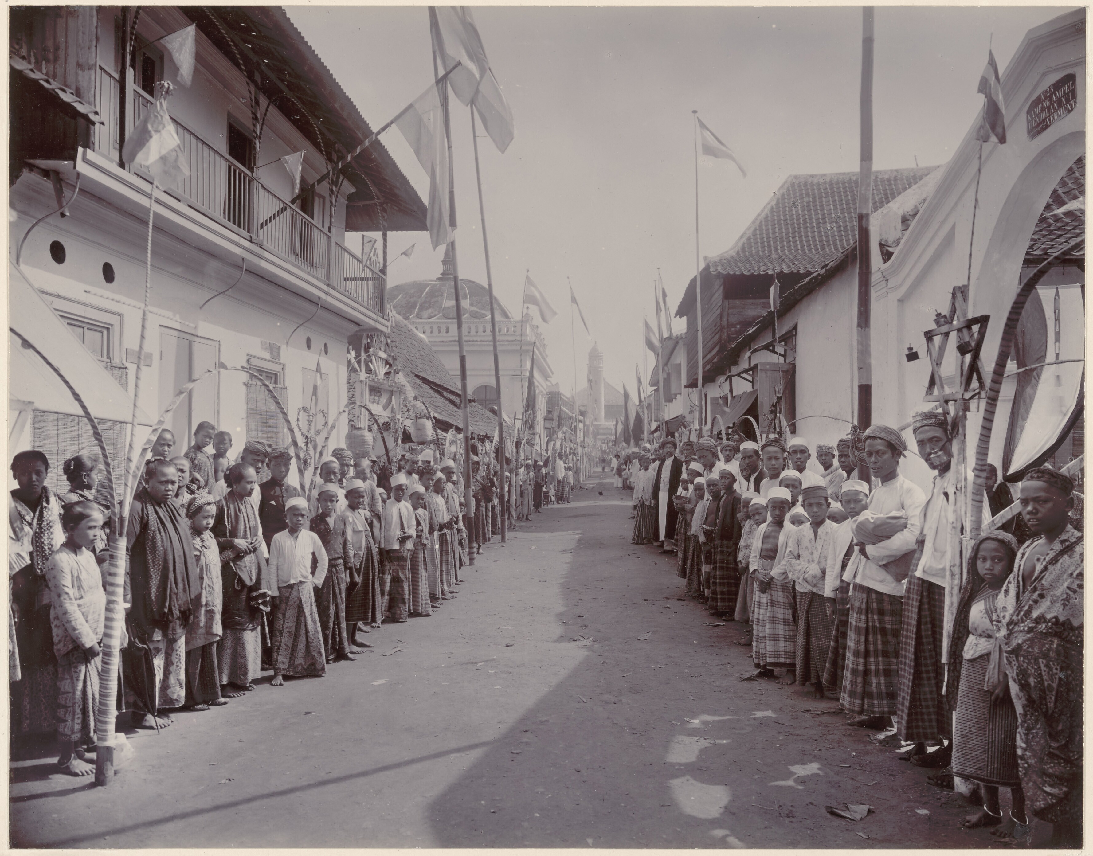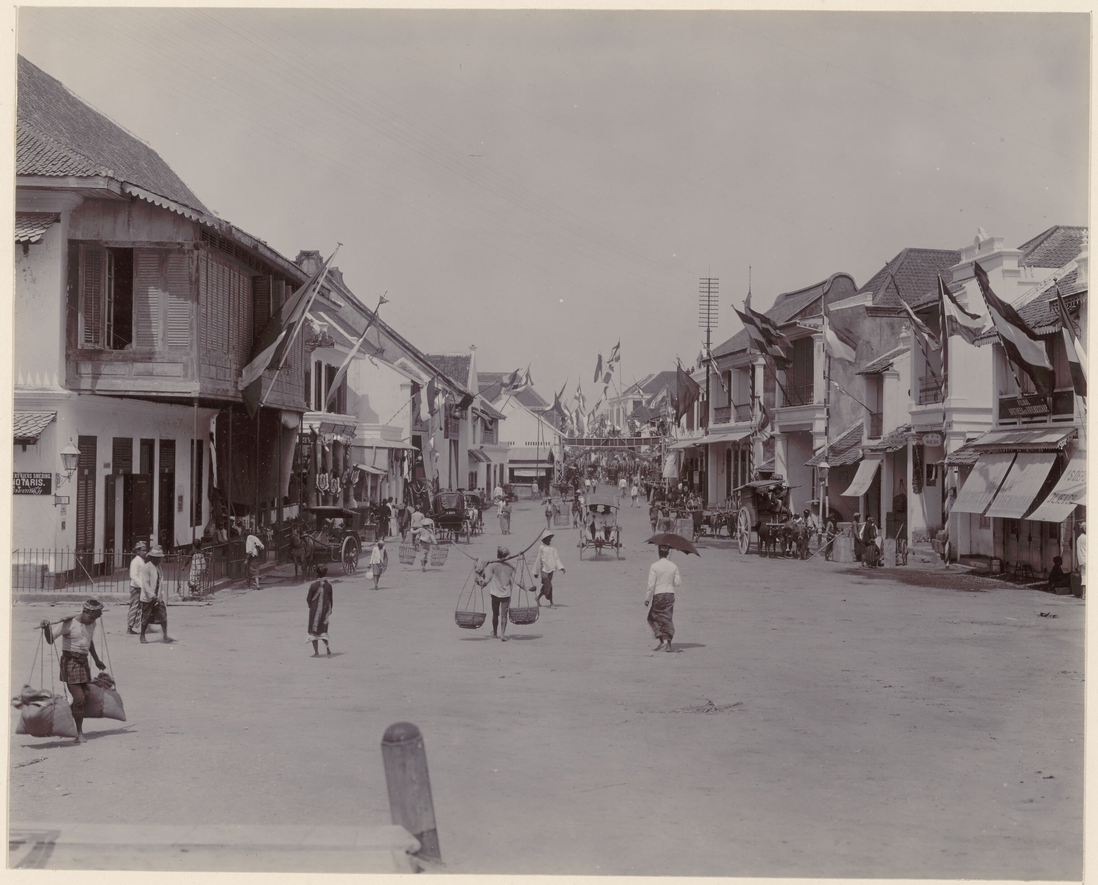 Straatgezicht tijdens de kroningsfeesten in Soerabaj...