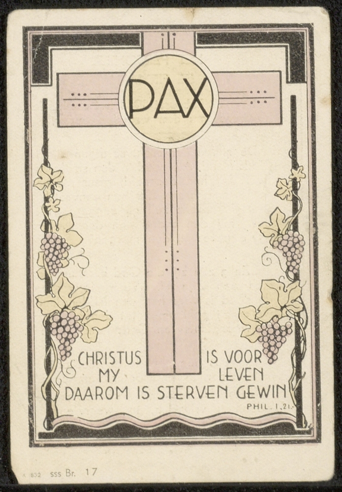 Bombardement Nijmegen; bidprentje personeel Fa. Haspels