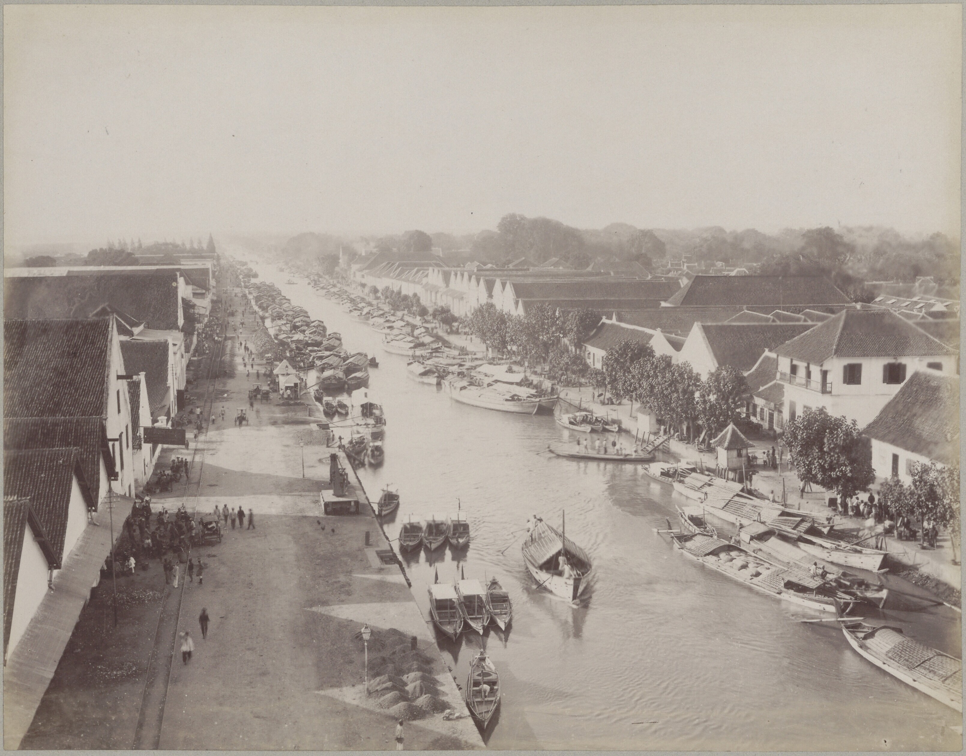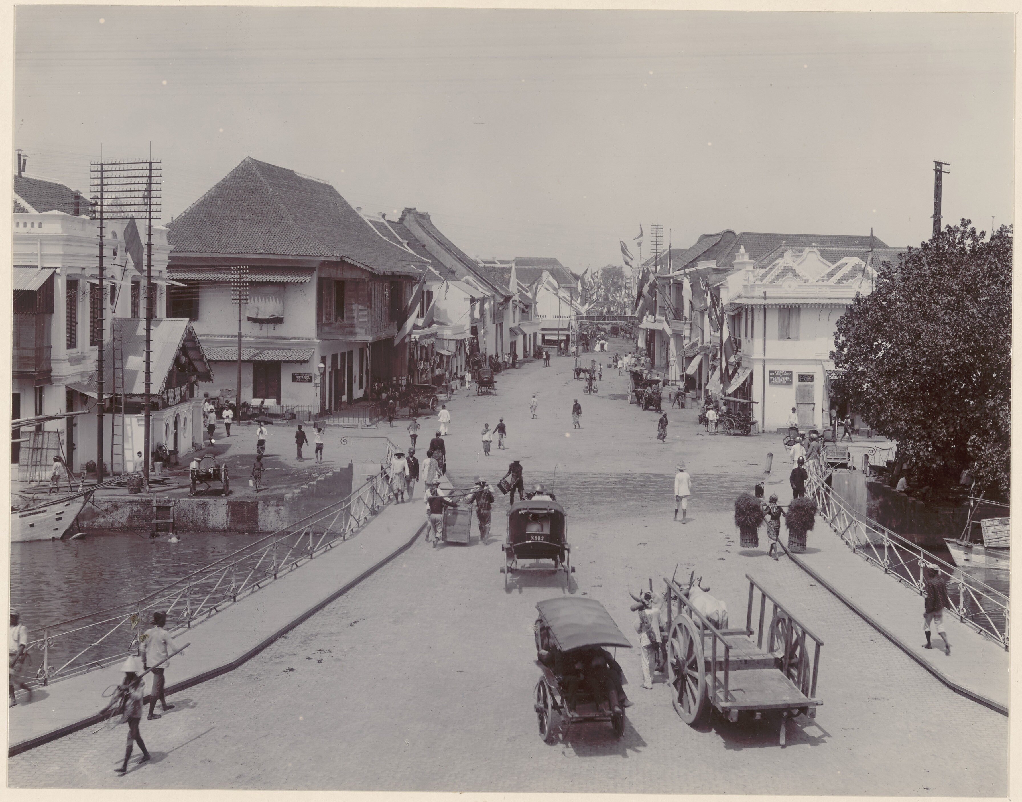 Straatgezicht bij de Roode Brug over de Kali Mas en ...