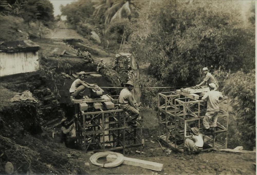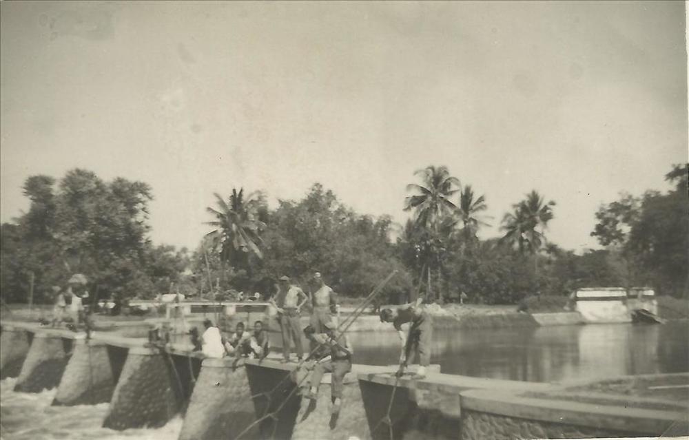Nederlands Indië; kapotte brug, werkzaamheden, Indon...