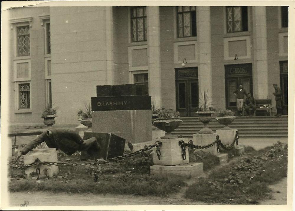 Gevallen standbeeld, waarschijnlijk Russisch, zonder...