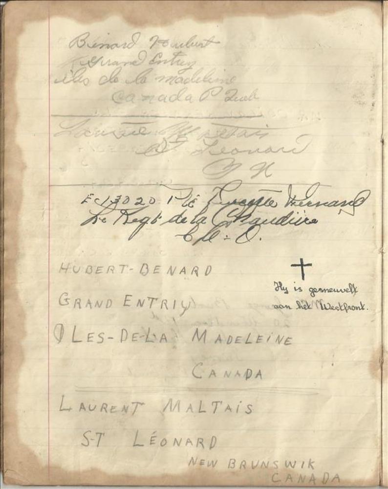 Schriftje met daarin een namenlijst van ingekwartier...