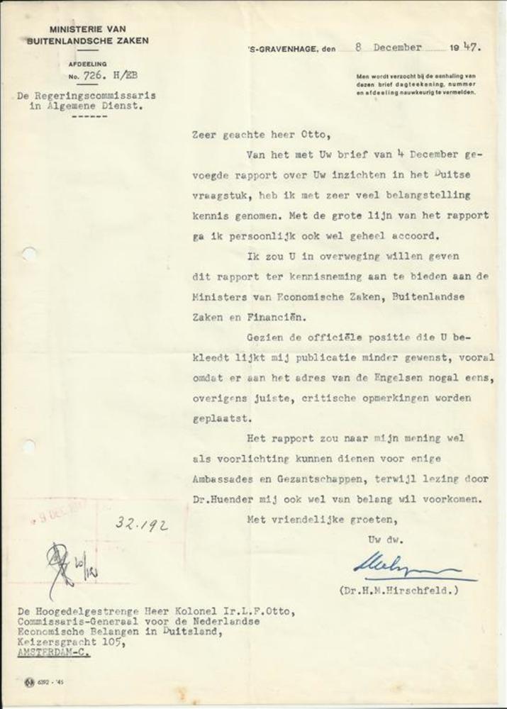 brief aan dhr Otto van de regeringscommissaris in Al...