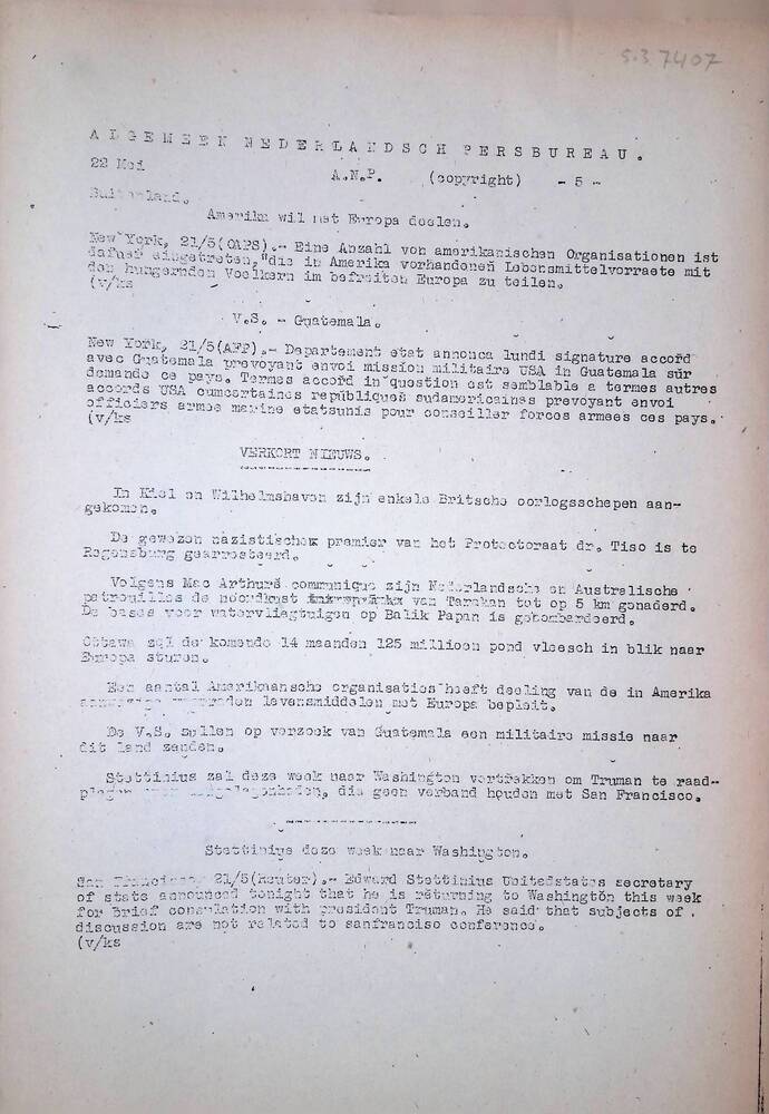 Algemeen Nederlandsch Persbureau, mededelingen, 22 m...