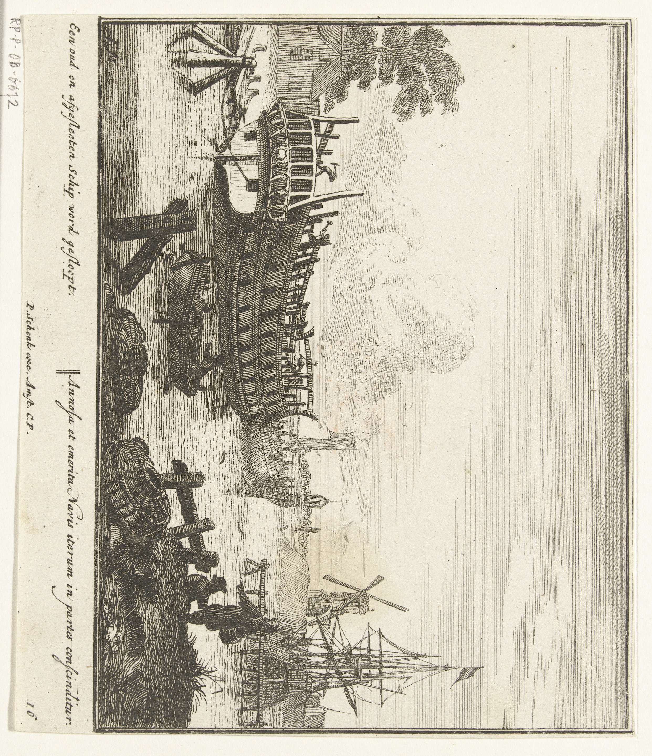 De sloop van een oud schip, plaat nr. 15, ca. 1700