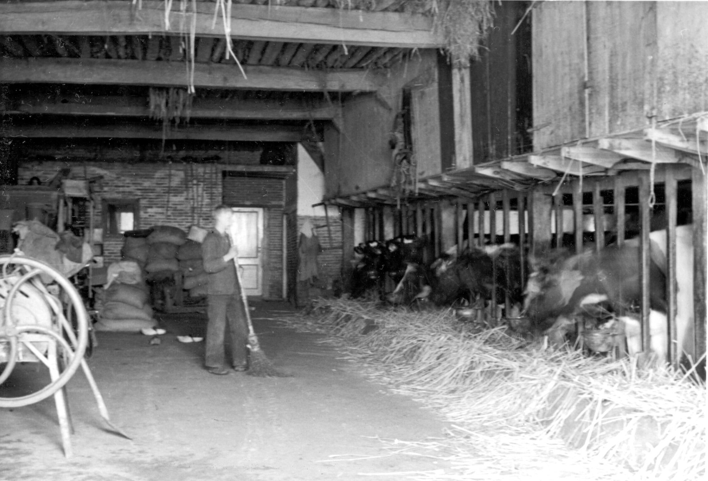 Koeienstal, Silvolde, 1940 (zwart-wit foto)
