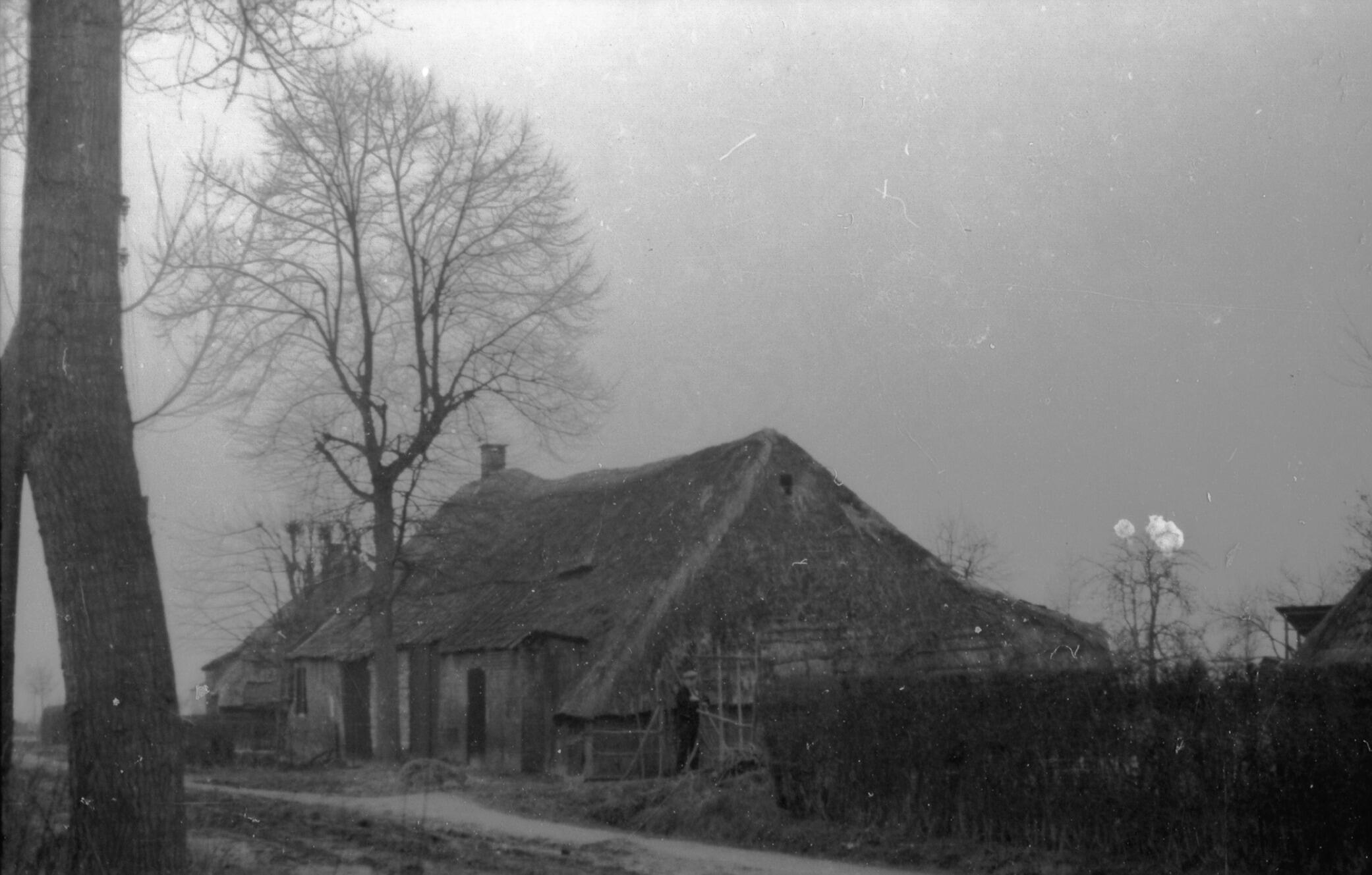 Boerderij en schuur, Bunnik, 1940 (zwart-wit negatief)
