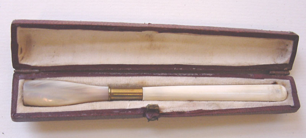 Sigarettenpijpje van ivoor en parelmoer in een foedr...