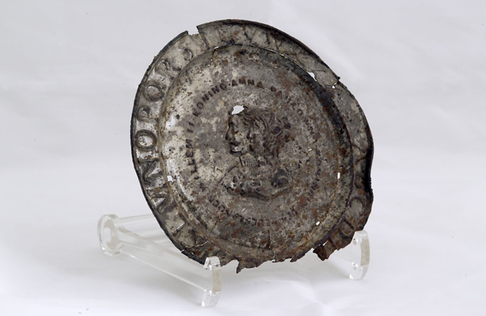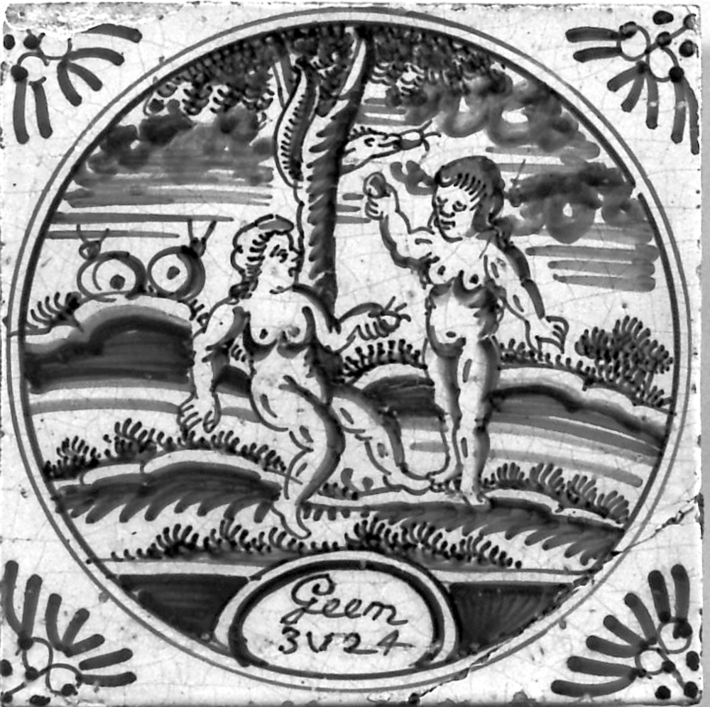 egeltableau, incompleet, van aardewerk met tinglazuu...